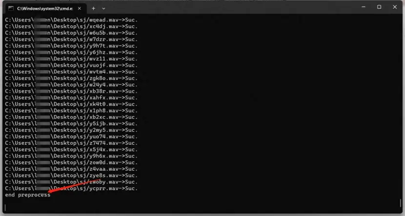 3,输入音频文件夹路径,处理数据