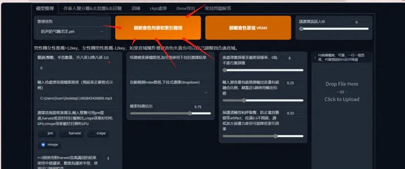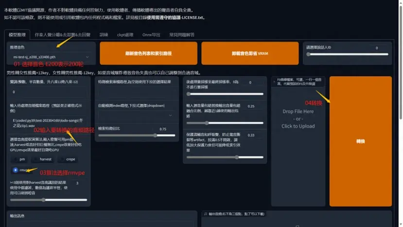 - 使用最先进的人声音高提取算法InterSpeech2023-RMVPE根绝哑音问题。效果最好(显著地)但比crepe_full更快、资源占用更小