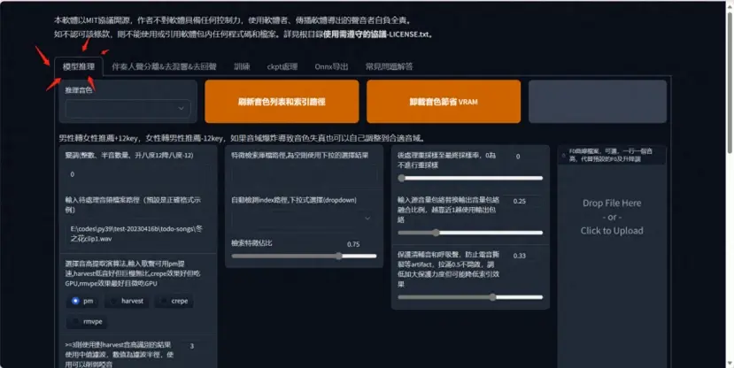 准备好要换音的音频,选择音频推理,找到自己已经训练好的模型音色