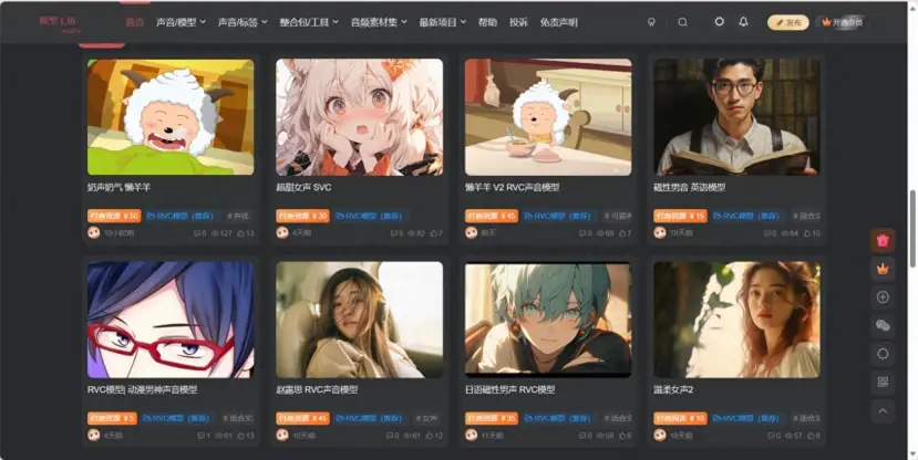 有很多高质量声音模型,目前还是在一直更新中,有免费和收费的模型,对比我们来训练的话,还是很省时省力